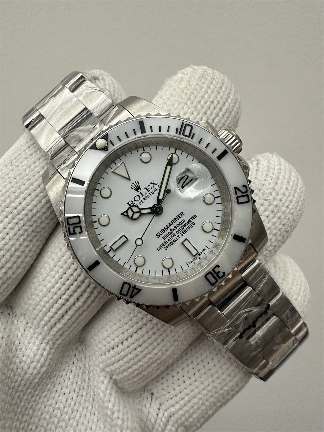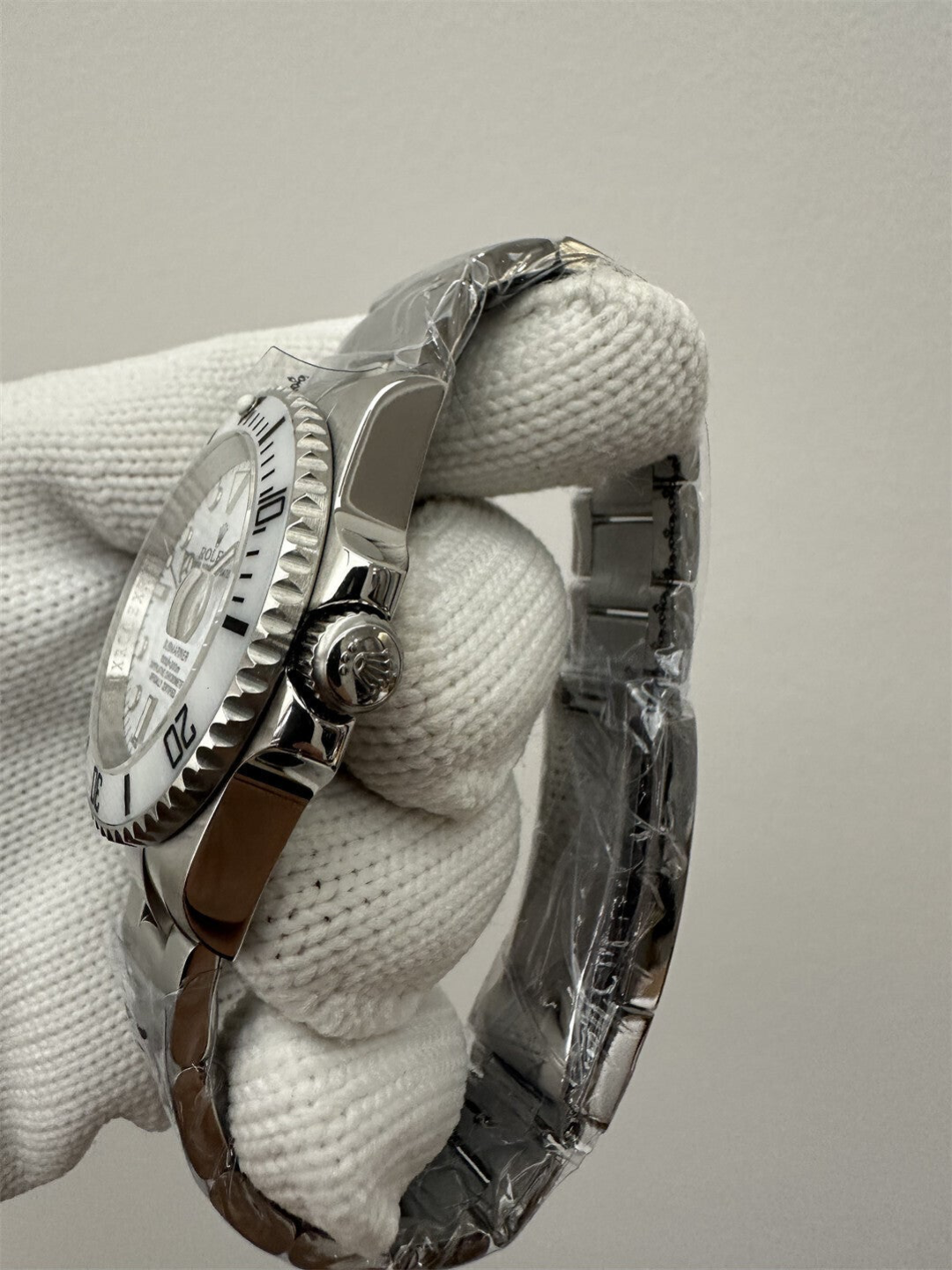 • Raised platinum bezel with large engraved 10 / 20 / 30 / 40 numerals (not a Submariner bezel)