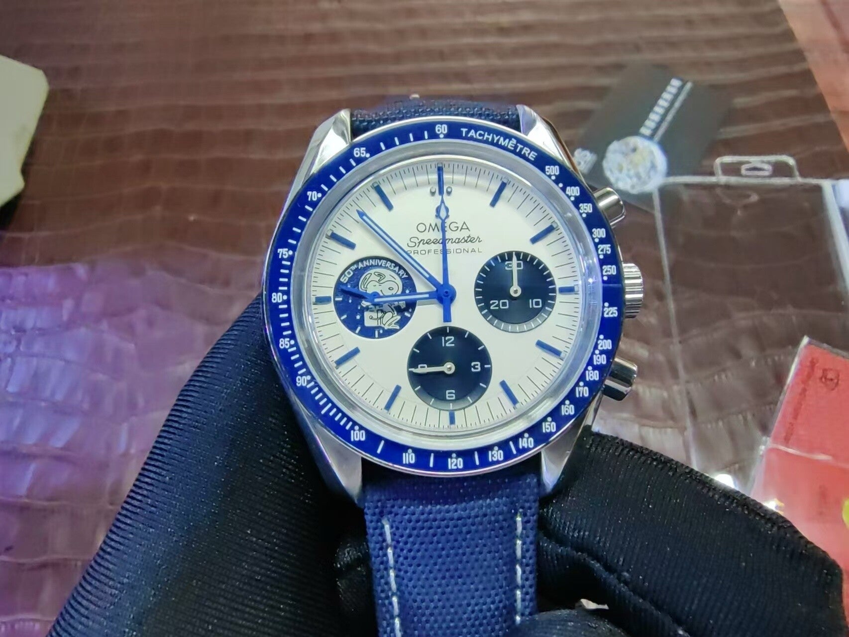 This design is inspired by official Omega Speedmaster anniversary editions, particularly Apollo / mission commemorative models.