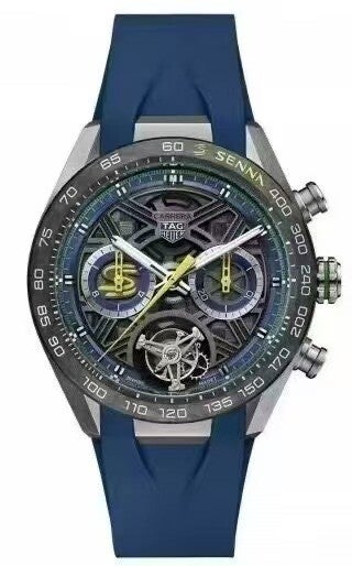 The TAG Heuer Formula 1 Senna Special Edition is a motorsport-inspired chronograph celebrating legendary Formula 1 driver Ayrton Senna. Featuring a bold blue rubber strap, yellow racing accents, tachymeter bezel, and multi-register chronograph layout, this watch is built for speed, precision, and aggressive wrist presence.
